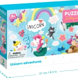 Mit diesem Puzzle gehen Ihre Kinder auf eine Reise in die Welt der Einhörner. Eine großartige Aktivität zur Förderung der Feinmotorik und Geduld. Das zusammengesetzte Bild hat die Maße von ca. 27 x 20 cm.
