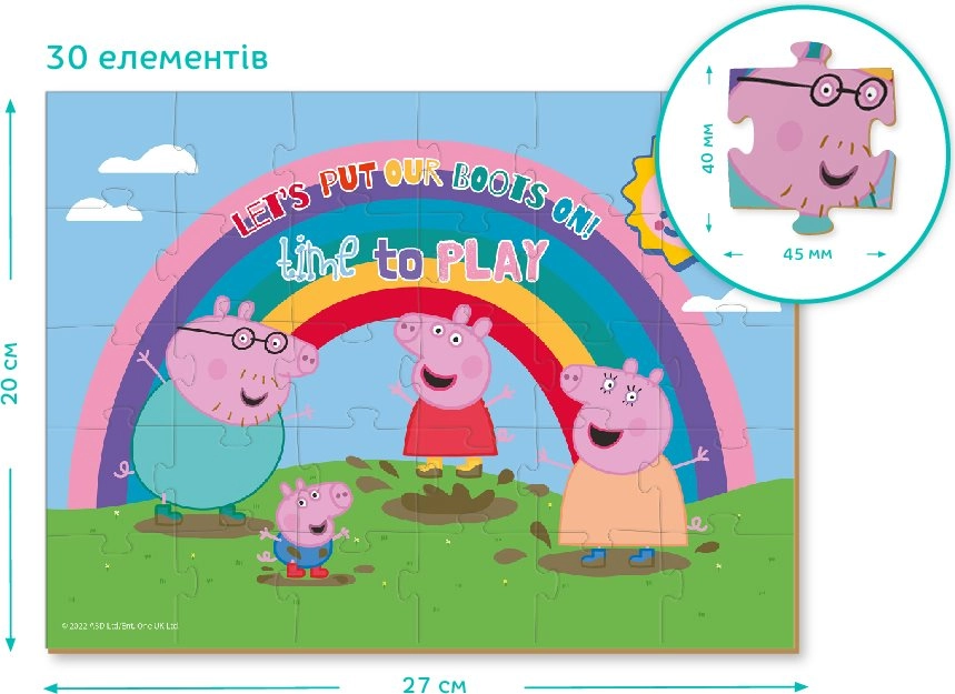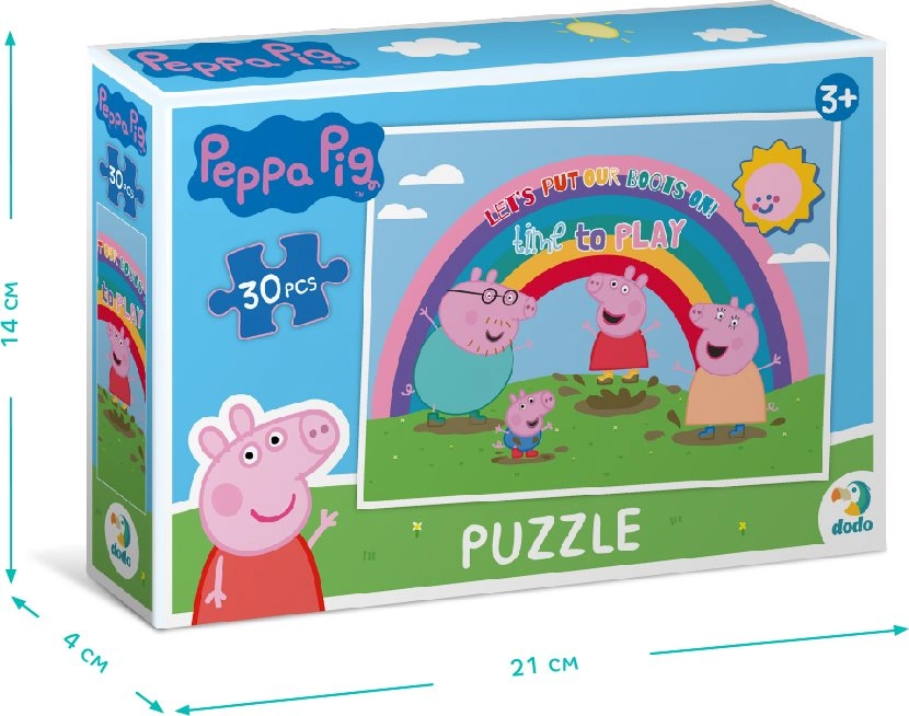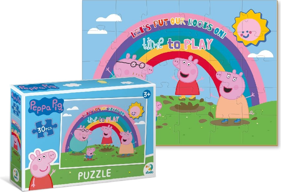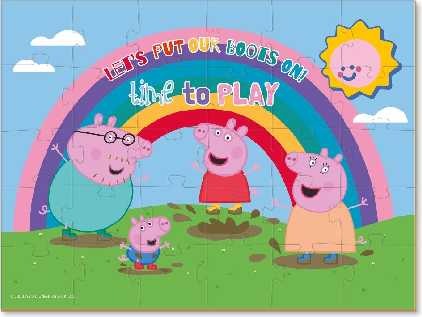 Genießen Sie lustige Momente mit dem Puzzle Peppa Wutz: Regenbogen mit 30 Teilen. Ideal für Kinder, die bunte Bilder und Herausforderungen beim Puzzeln lieben.