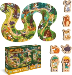 Erkunden Sie die Welt des Waldes mit diesem wunderschönen Holzpuzzle, das 16 Teile und hölzerne Tierfiguren enthält. Ideal für kleine Entdecker und ihre ersten Abenteuer im Wald.