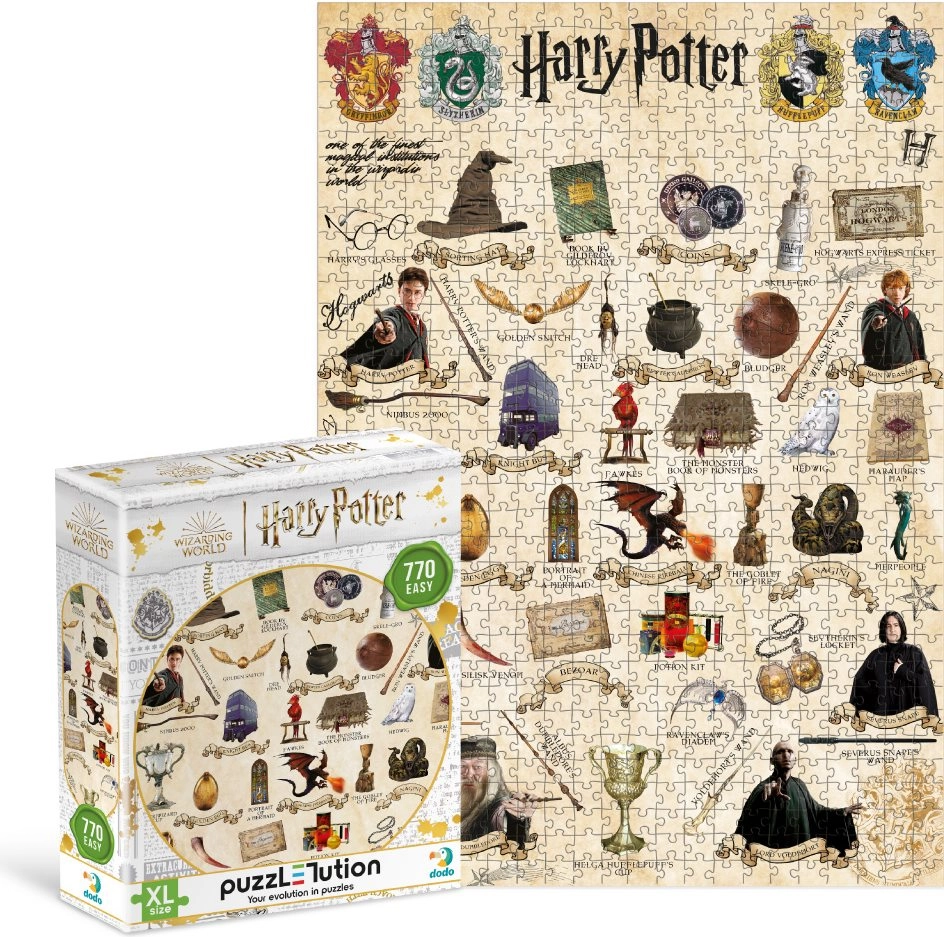 Erweitern Sie Ihre zauberischen Fähigkeiten mit dem DODO Puzzle Harry Potter: Handbuch für Zauberer. Dieses Puzzle ist eine großartige Herausforderung für alle Altersgruppen und bietet Freude beim Vervollständigen des Bildes, das beliebte Motive aus der Welt von Harry Potter treu einfängt. Mit den Maßen des zusammengesetzten Puzzles von ca. 48 x 68 cm wird es zu einem großartigen Accessoire für jedes Interieur: