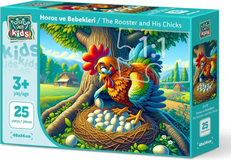 Ein lustiges Puzzle mit dem Motiv Hahn mit Eiern für Puzzle-Liebhaber. Durch das Legen dieses Bildes lernen Kinder nicht nur Geduld, sondern haben auch Spaß bei jedem Teil, das sie hinzufügen. Das Puzzle hat 25 Teile und bietet eine wunderschön farbenfrohe Illustration. Das fertige Puzzle soll die Freizeit verschönern und kann auch eine schöne Dekoration für das Kinderzimmer sein.