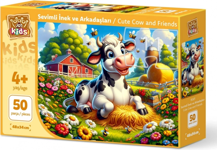 Entdecken Sie die Magie des Puzzelns mit diesem fünfzigteiligen Puzzle, das idealen Spaß für Kinder und Erwachsene bietet. Bringen Sie ein bezauberndes Bild einer niedlichen Kuh und ihrer Freunde in Ihr Zuhause.