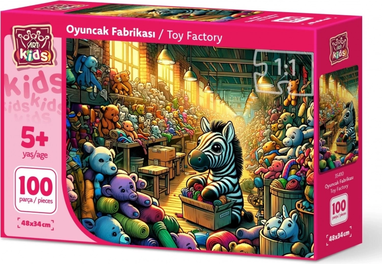 Genießen Sie das Zusammensetzen dieses erstaunlichen Puzzles mit dem Motiv der Spielzeugfabrik, das 100 Teile hat. Perfekter Spaß für alle Puzzle-Liebhaber.