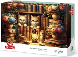 Puzzle mit dem Motiv der Katzenbibliothek bietet Spaß mit 260 Teilen. Erstellen Sie ein schönes Bild Ihrer eigenen Katzenbibliothek zu Hause. Die Größe des fertigen Puzzles beträgt 48 x 34 cm.