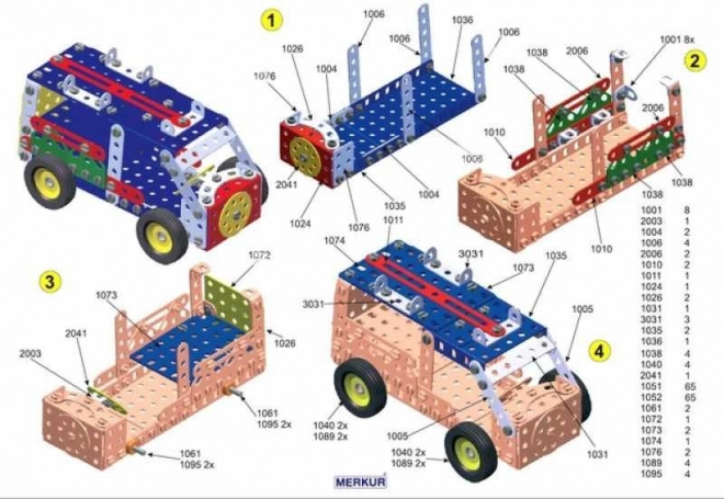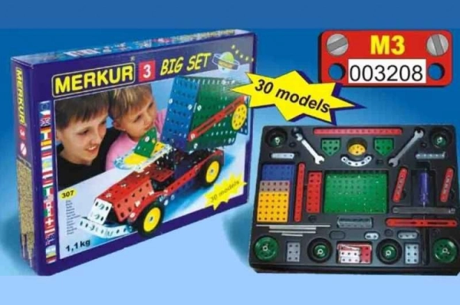 Wir präsentieren den Bausatz MERKUR 3, der ideal für kleine Ingenieure und ihre Eltern ist. Dieser klassische einlagige Bausatz enthält 273 Teile inklusive Bänder, Bögen, Winkel, Räder und Reifen. Im Paket sind auch die Schrauben und Muttern enthalten, die Sie zum Zusammenbau einer breiten Palette von Modellen benötigen.