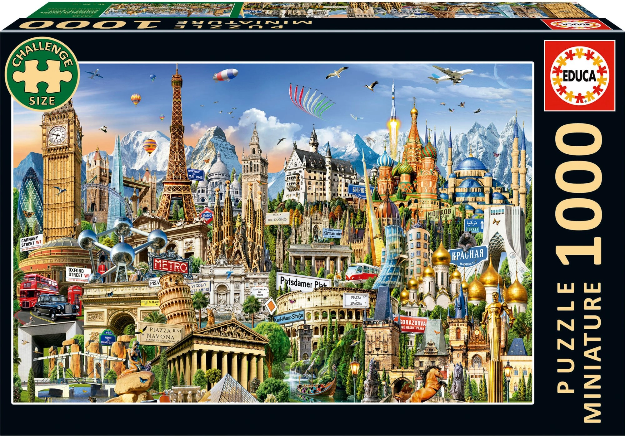 Lernen Sie das Educa Miniatur-Puzzle Symbole Europas kennen, das ein schönes und detailliertes Design europäischer Symbole auf einer Fläche von 46 x 30 cm bietet. Dieses Puzzle ist ideal für Enthusiasten, die wenig Platz haben, aber ihre Leidenschaft für das Puzzeln nicht aufgeben möchten. Dank des beigelegten Klebers können Sie das fertige Werk als Dekoration bewahren.