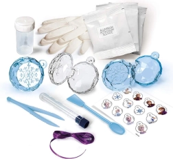 Kristalljuwelen Die Eiskönigin II von Clementoni kombiniert ein experimentelles Set mit handgemachter Schmuckherstellung. Es ermöglicht Ihnen, bunte Kristalle zu züchten, die in durchsichtige Medaillons als einzigartigen Schmuckstück platziert werden können. Dieses kreative Set ist ideal für mutige und neugierige Kinder, die keine Angst haben, ihre Persönlichkeit auszudrücken. Eine großartige Möglichkeit, Kreativität zu fördern und zu inspirieren!