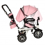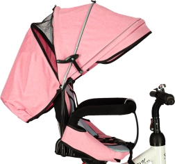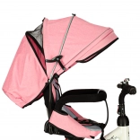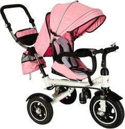 Attraktives und modernes Design zusammen mit einem verstellbaren Griff ermöglichen es den Eltern, die Fahrtrichtung zu steuern. Ein Verdeck mit durchsichtigem Fenster bietet Schutz vor Sonne und Regen und ermöglicht die Überwachung des Kindes. Das Dreirad ist mit Reflektoren, eingebauter Bremse und 2-Punkt-Sicherheitsgurten für maximale Sicherheit ausgestattet. Es ist umwandelbar, was es zu einem idealen Begleiter macht, von jungen Jahren des Kindes bis zu seinem sechsten Lebensjahr.