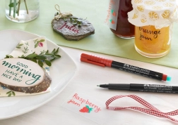 Set mit 4 hochwertigen Permanentmarkern der Marke Faber-Castell, geeignet zum Schreiben auf verschiedenen glatten Oberflächen. Die Marker sind mit einem speziellen Radiergummi zum einfachen Entfernen der Tinte ausgestattet und haben schnelltrocknende, intensive Farben.