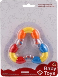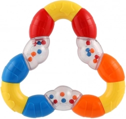 Diese multifunktionale Rassel und Beißring in Dreiecksform ist speziell für die Kleinsten entworfen. Dank dem flexiblen Kunststoff ist das Greifen auch für kleine Hände einfach und bietet eine angenehme Oberfläche zum Beißen, was hilft, das Zahnfleisch zu beruhigen. Das sanfte Rasseln fördert gleichzeitig die auditive Wahrnehmung und zieht die Aufmerksamkeit des Kindes an.