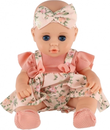 Niedliche Puppe mit beweglichen Blinzelaugen aus festem Kunststoff, ideal für kleine Mütter. Die Augen schließen sich, wenn sie hingelegt wird, was ihre Realitätsnähe erhöht.