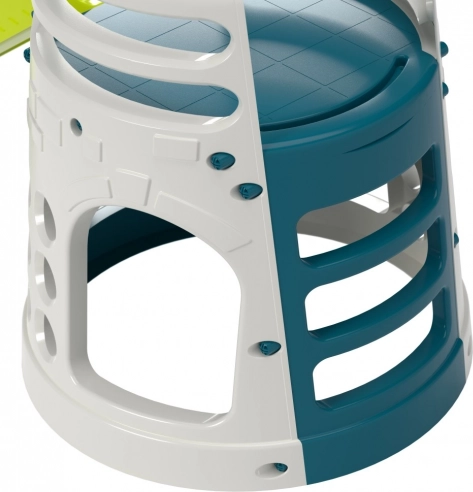 Der Bereich unter der Rutsche und dem Turm dient als Versteck oder Unterschlupf beim Spielen.