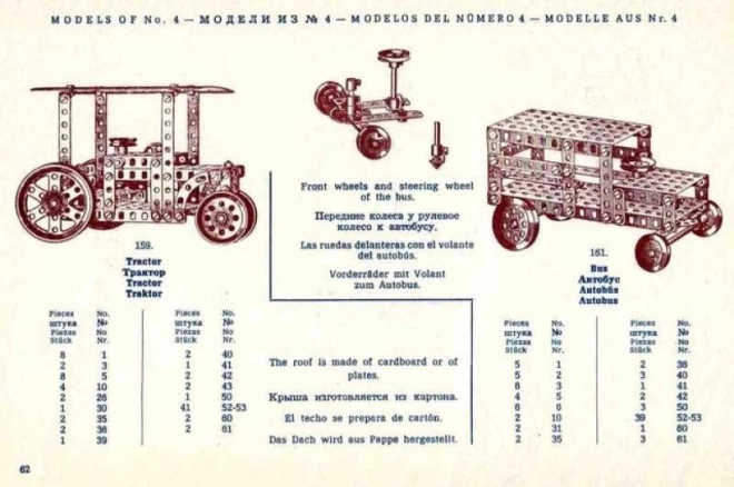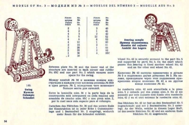 Zum Lieferumfang gehört ein umfangreiches, 94-seitiges Anleitungsbuch im Stil der 30er-Jahre, konzipiert für die Sets MERKUR Classic C03, C04 und C05. Sie bauen bis zu 141 verschiedene Modelle – von Fahrzeugen und Maschinen bis hin zu technischen Mechanismen. Das ideale Geschenk für kreative Kinder ab 8 Jahren, Technikfans und Liebhaber von Retro-Design.
