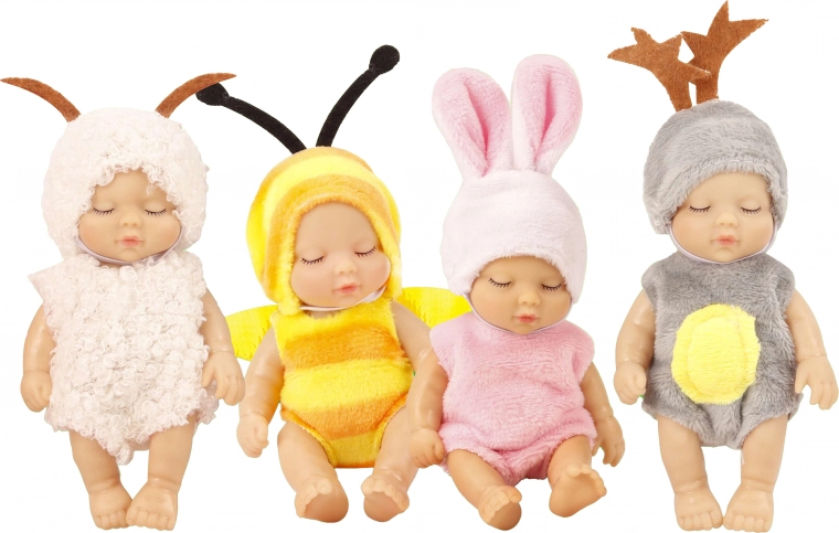Erweitern Sie Ihre Sammlung mit diesem zauberhaften Baby, das nur 12 cm groß ist. Jedes Stück ist sorgfältig mit Liebe zum Detail verarbeitet, einschließlich bunter Outfits mit verschiedenen Tiermotiven. Das Baby ist ideal zum Spielen oder als dekoratives Element im Kinderzimmer.