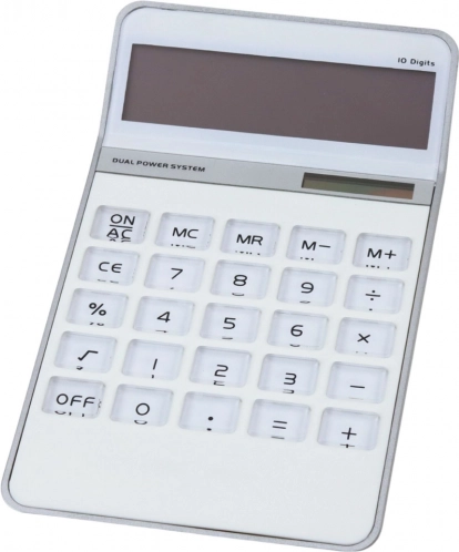 Moderner Bürokalkulator in einem eleganten weißen Gehäuse, der Ästhetik und Funktionalität kombiniert. Sein minimalistisches Design und die deutlich markierten Tasten machen ihn perfekt für jeden Schreibtisch – im Büro, zu Hause oder in Bildungseinrichtungen.