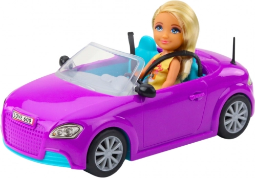 Das Set mit der Miniaturpuppe Ankiki und dem lilafarbenen Cabriolet ist ideal für Kinder, die dynamischen und kreativen Spaß lieben. Die niedliche Puppe mit langen blonden Haaren passt perfekt zu dem farbenfrohen Auto, das dem Kind erlaubt, Fahrer zu sein und sich auf ein Abenteuer einzulassen.