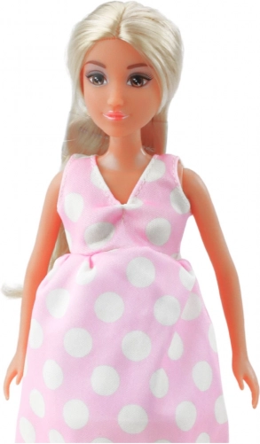 Schwangere Puppe Anlily in Rosa Kleid mit Punkten und Langen Haaren