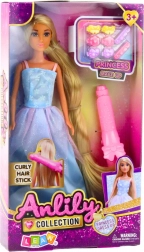 Im Set finden Sie einen rosa Lockenstab und acht bunte Haarklammern, die es dem Kind ermöglichen, das lange blonde Haar der Puppe nach eigenen Vorstellungen zu stylen. Anlily hat bewegliche Arme und Beine, was das Spielen von Modeszenen und der Welt der Schönheit erleichtert.