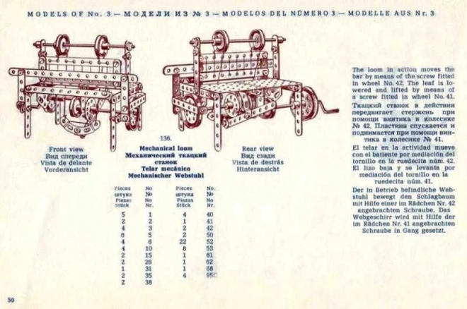 Enthalten ist ein umfangreiches, zeittypisch gestaltetes Anleitungsheft mit 94 Seiten mit bebilderten Schritt-für-Schritt-Anleitungen. Die Anleitungen werden durch Originaltexte in Englisch, Deutsch, Spanisch und Russisch ergänzt und sind für die Baukästen MERKUR classic C03, C04 und C05 konzipiert.