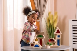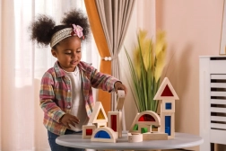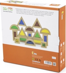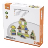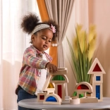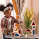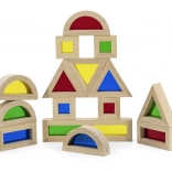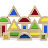Dreiecke, Quadrate, Rechtecke und Halbkreise fördern das räumliche Vorstellungsvermögen und stabile Konstruktionen beim Stapeln und Schichten.