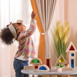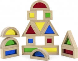 Dieses Set aus 16 sorgfältig gefertigten Holzbausteinen mit farbigen transparenten Einsätzen bietet endlose Möglichkeiten zum Bauen, Sortieren und Entdecken von Licht und Farben. Kinder können Türme, Häuser oder Brücken bauen und zugleich ihr räumliches Verständnis und logisches Denken entwickeln.