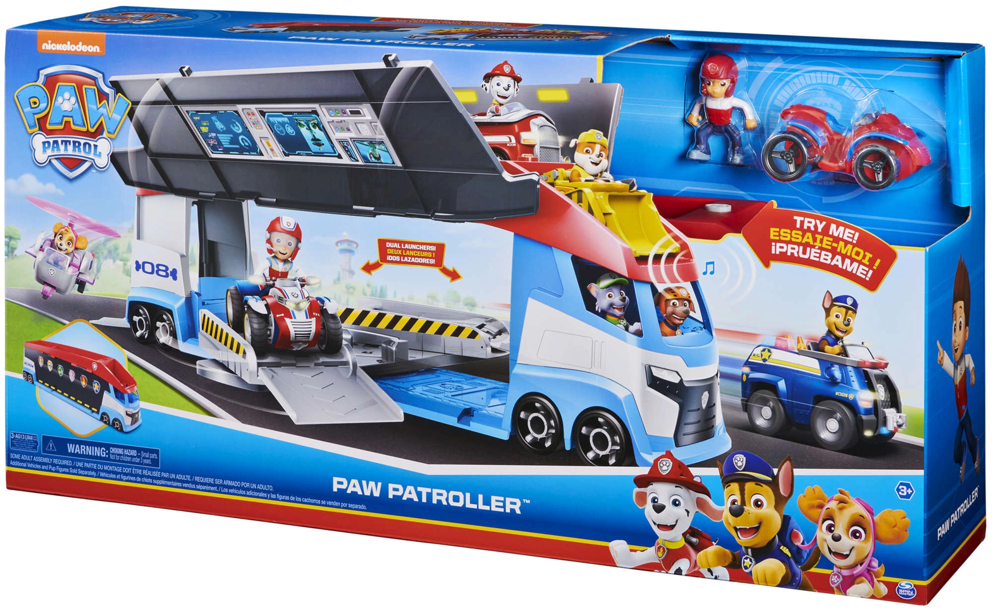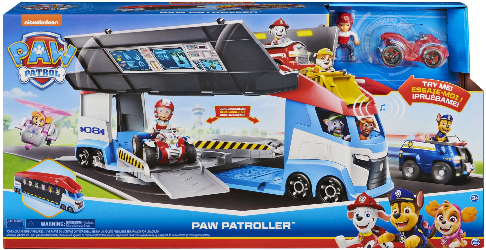 Der Patroller transportiert mühelos bis zu 6 Fahrzeuge (kompatibel mit Standardfahrzeugen von PAW PATROL), verfügt über 2 Starter für den schnellen Start in die Action und hochklappbare Seitentüren für ein reibungsloses Auffahren. Mit der enthaltenen Ryder-Figur und seinem Quad können Kinder sofort auf Mission gehen.