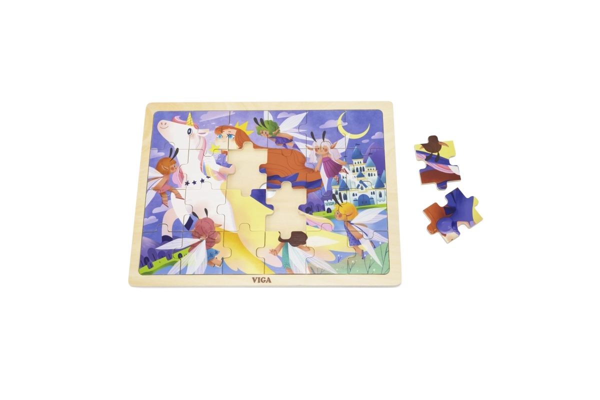 Ideal für Kinder ab 24 Monaten: Das Puzzeln unterstützt Hand-Auge-Koordination, Geduld sowie das Erkennen von Formen und Farben. Die farbigen Illustrationen mit Schloss, Feen und Einhorn regen zum Geschichtenerzählen an und fördern so auch die Fantasie und den Wortschatz.