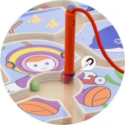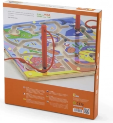 Interaktives Holzlabyrinth mit magnetischem Stäbchen, in dem Kinder bunte Kugeln auf verschlungenen Wegen bewegen. Fördert Feinmotorik, Koordinationsfähigkeiten und logisches Denken. Sicher eingeschlossene Kugeln, robuste Holzplatte und fröhliche Meeresmotive für Kinder ab 18 Monaten.