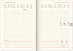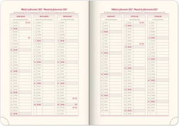 Einen Wochenkalender mit tschechisch-slowakischem Kalender und Übersetzungen ins Englische, Deutsche, Ungarische und Russische.