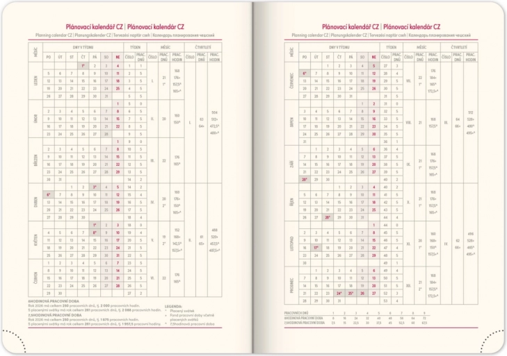 Dieser wöchentliche Kalender kombiniert Stil und Funktionalität dank des blau-goldenen Designs mit metallischer Oberfläche und Jahreszahlprägung. Er verfügt über praktische Merkmale wie abgerundete Ecken, eine Stiftschlaufe und ein elastisches Band, die für eine komfortable Nutzung sorgen. Der Kalender enthält einen Zeitplan mit einem tschechisch-slowakischen Kalender sowie weiteren Sprachen wie Englisch, Deutsch, Ungarisch und Russisch.