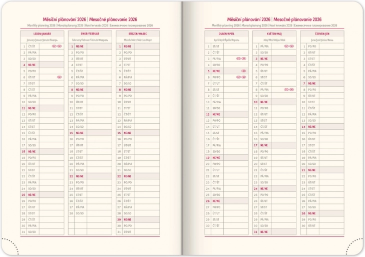 - Monatliche und jährliche Planungskalender für die Jahre 2026–2027