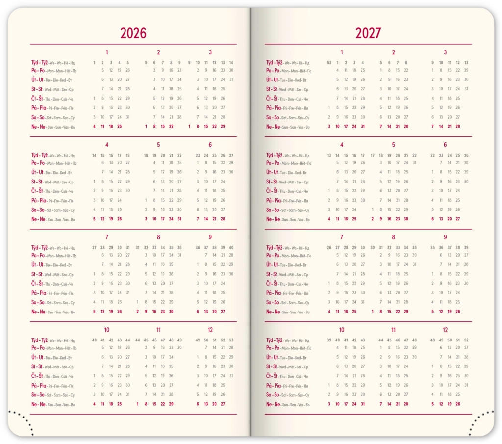 Der Panama 2026 Kalender ist für moderne Nutzer entworfen, die Praktikabilität und Stil verlangen. Die Oberfläche des Kalenders hat eine feine Struktur, die für verschiedene Arten von Prägungen geeignet ist, was dem Produkt Eleganz verleiht. Dieser Kalender bietet:Spezifikationen