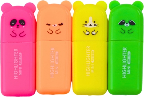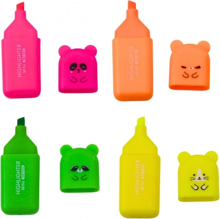 Bunte Mini-Textmarker in Bärchenform, ideal für kreative Nutzung. Inklusive Plastikgehäuse.