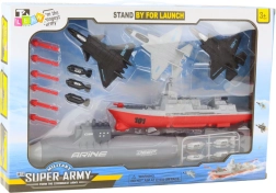 Militärset für Kinder mit Flugzeugträger, U-Boot und Kampfjets