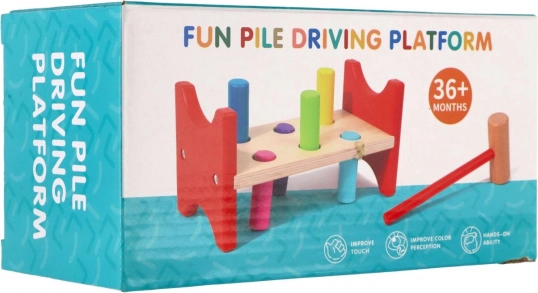 Dieses zeitlose Holzspielzeug unterstützt natürliches Lernen durch Spiel. Kinder klopfen mit dem Hammer die bunten Stifte in die Öffnungen und trainieren dabei Zielgenauigkeit, Rhythmus und Geduld. Die stabile Holzbank in Kombination mit sicher abgerundeten Kanten gewährleistet eine lange Lebensdauer und sicheres Spielen.