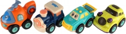 Kleine Fahrzeuge, großer Spaß! Plastischer Antrieb auf Schwungrad ist ideal für Kinder, die Autos, Busse oder Baumaschinen lieben. Einfach zurückziehen und loslassen – das Fahrzeug fährt von selbst vorwärts.