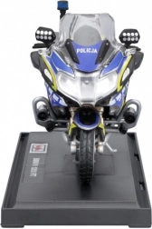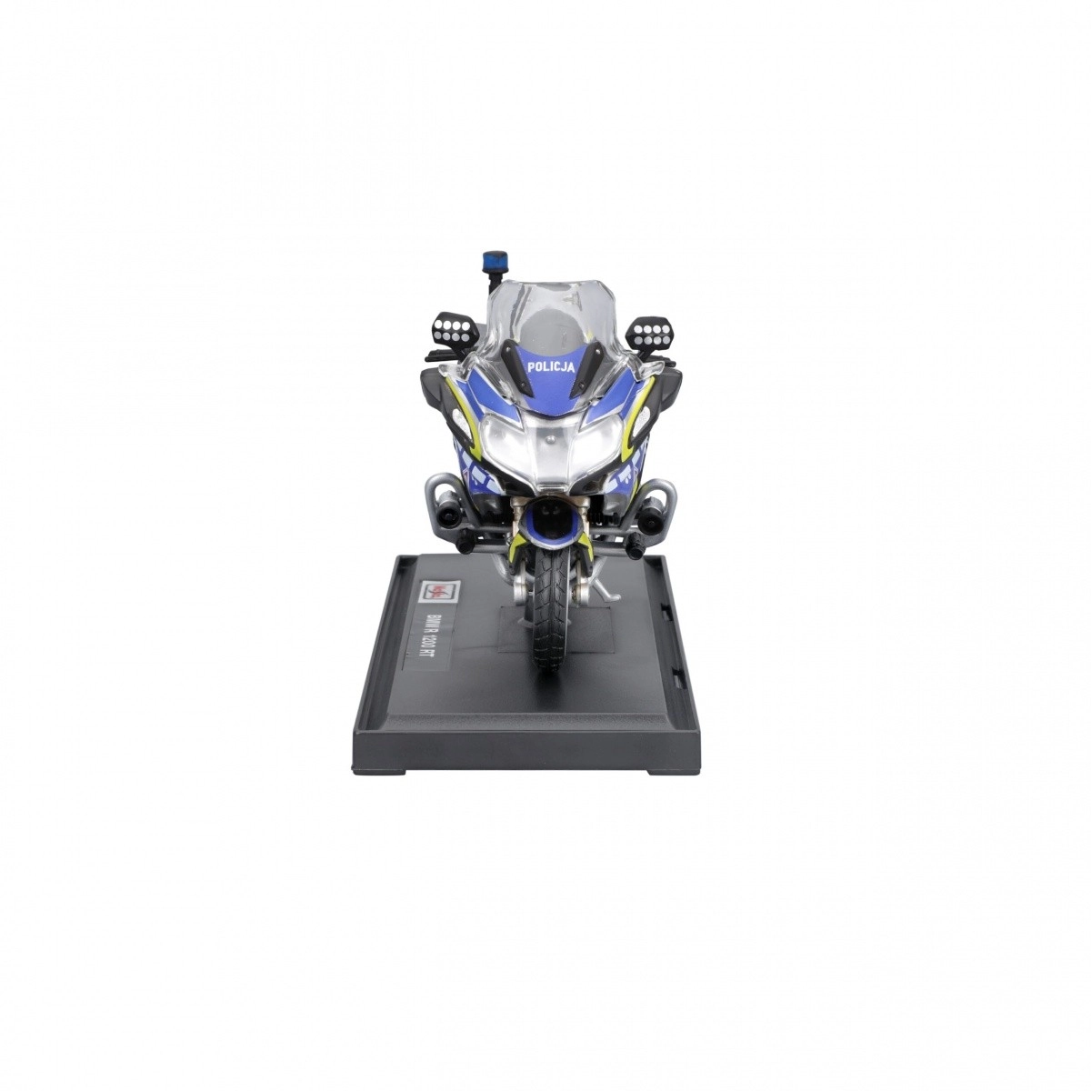Dieses Metallmodell eines Motorrads der polnischen Polizei ist detailliert im Maßstab 1:18 hergestellt und zeichnet sich durch große Sorgfalt im Detail und bewegliche Federung aus. Dank des ausziehbaren Ständers kann das Modell ohne Basis stehen.