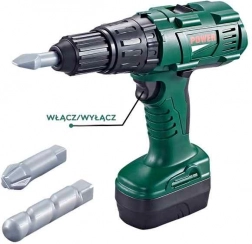 Großes Werkzeugset von der beliebten Marke Woopie enthält eine praktische grüne Werkzeugbox mit 15 Werkzeugen, einschließlich einer kabellosen Bohrmaschine mit 3 austauschbaren Endstücken, die echte Geräusche und Drehungen imitiert.