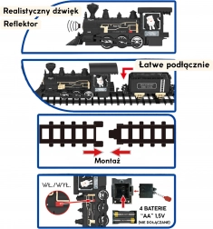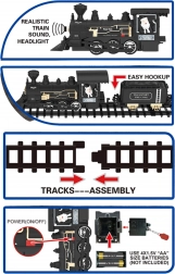 Die klassische WOOPIE-Dampflok ahmt einen echten Zug realistisch nach – von der Lok über den Kohlewagen bis zum Personenwagen. Ein leuchtender Scheinwerfer und realistische Geräusche verstärken die Atmosphäre jeder Fahrt, während die einfachen Schnappschienen den schnellen Aufbau eines Rundkurses mit einem Umfang von 403 cm ermöglichen.