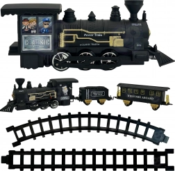 • Komplett-Set: Lokomotive mit Licht und Geräuschen, Kohlewagen, Personenwagen, 8 gebogene und 4 gerade Schienen