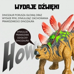 Der Dinosaurier bewegt sich vorwärts und rückwärts, und imitiert die Bewegungen eines echten Stegosaurus;
