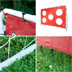 Das Tor enthält verschiedene Öffnungen im Zielnetz, die punktweise markiert sind und die Schusstechnik fördern sowie zu sportlichem Wettbewerb anregen. Nutzen Sie die Gelegenheit, die Fußballatmosphäre in Ihren Garten zu bringen, mit den richtigen Abmessungen für Kinder und Wetterbeständigkeit.