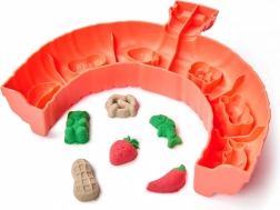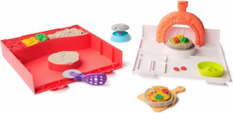 Mit dem SquishPizza-Set richten Kinder ihre eigene „Pizzeria“ direkt am Tisch ein. Aus Kinetic Sand formen sie den Teig, pressen Zutaten wie Salami, Gemüse oder Erdbeeren und drücken die Pizza anschließend in die Form, wo sie spielerisch „aufgeht“ – fast wie eine echte. Dank der umfangreichen Werkzeugausstattung ist das Spiel einfach, sauber und grenzenlos kreativ.