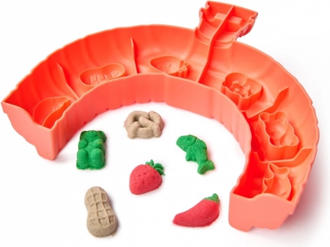 Farben mischen, Gemüse, Salami und verrückte Zutaten herstellen. Kinetic Sand behält die Form, lässt sich hervorragend schneiden und trocknet nie aus.