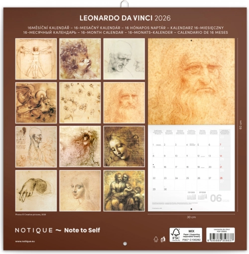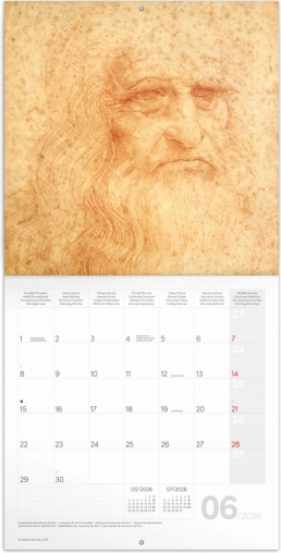 Entdecken Sie den praktischen Notizkalender mit zwölf Werken von Leonardo da Vinci. Übersichtliches Kalendarium, Monatsphasen und Platz für Notizen machen diesen Kalender zum idealen Begleiter für Ihr Jahr.