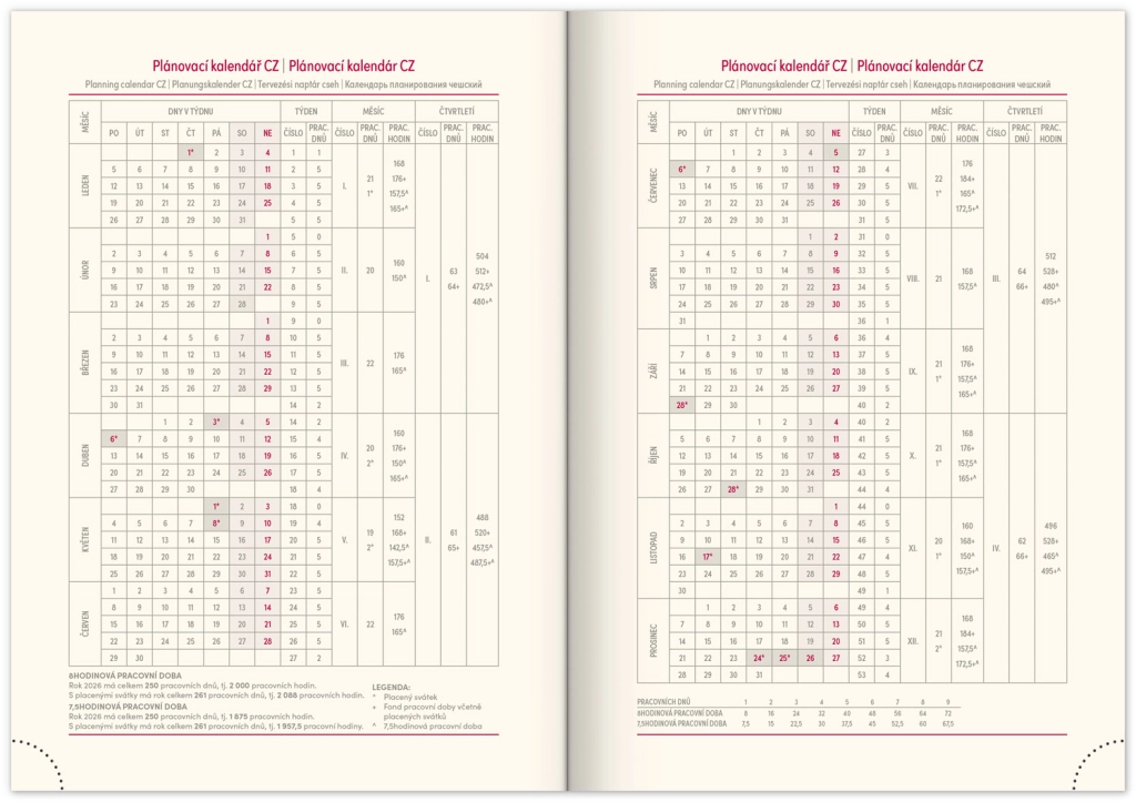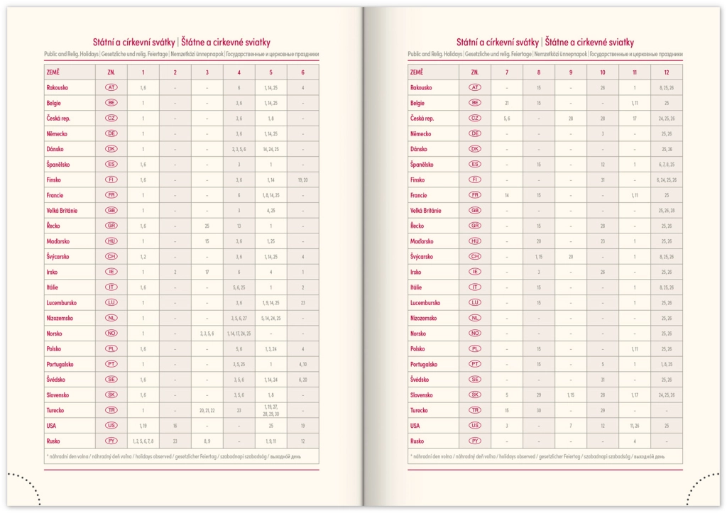 Arbeitsplanungskalender und Feiertagsliste in der Tschechischen und Slowakischen Republik