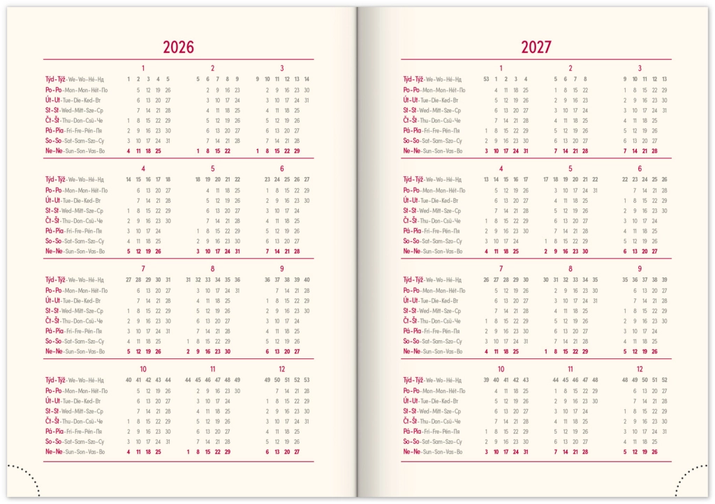 Behalten Sie Ihren täglichen Plan organisiert und effizient mit unserem wöchentlichen Planer Rivoli für das Jahr 2026. Dieser elegante Planer bietet: