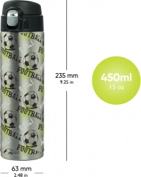 Diese großartige Thermoflasche kann von Kindern bereits im jungen Schulalter dank intuitiver Öffnung und praktischem Silikontrinkverschluss leicht bedient werden. Ihr Volumen beträgt 450 ml und ist in mehreren verspielten Designs erhältlich, die sich mit anderen Schulbedarfen der Kinder abstimmen lassen.