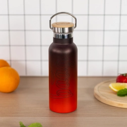 BAAGL Thermosflasche mit Bambusdeckel Gradient Rot-Schwarz