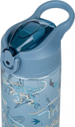 Verspielte Dinosaurierillustrationen auf der Flasche, die jedes Kind erfreuen werden.